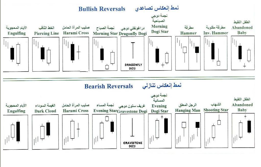 شمعات نقاط الدعم و المقاومة و شمعات الصعود والهبوط العكسي